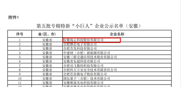 7月21日,工業(yè)和信息化部開展的第五批專精特新“小巨人”企業(yè)公示結束。安徽淘云科技股份有限公司(后稱“淘云科技”)憑借企業(yè)在專業(yè)、精細、特色、創(chuàng)新等核心競爭力領域的出眾表現(xiàn),從眾多參選企業(yè)中脫穎而出,成功獲得第五批國家級專精特新“小巨人”的認定!