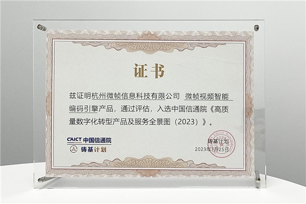 7月27日,由中國信通院主辦的“2023數(shù)字生態(tài)發(fā)展大會”暨中國信通院“鑄基計劃”年中會議在北京召開。本次大會全面總結了“鑄基計劃”上半年度工作成果,并重磅發(fā)布了《高質量數(shù)字化轉型產(chǎn)品及服務全景圖(2023)》。微幀科技作為全球領先的視頻編碼及AI解決方案提供商受邀出席會議,【微幀視頻智能編碼引擎】以行業(yè)領先的編碼性能、不斷突破技術極限的自研能力,實力入選全景圖。