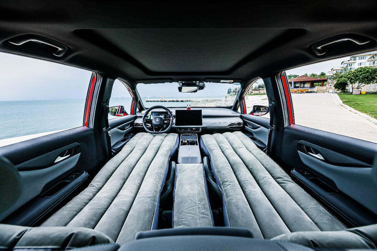 作為一款A(yù)級SUV,合創(chuàng)Z03卻有著讓人驚喜的空間表現(xiàn),它擁有2750mm的超長軸距,配合短懸長軸的結(jié)構(gòu)設(shè)計,讓車內(nèi)可用空間長達1900mm,占比更是達到車長的60%,營造了相當(dāng)充裕的前后排的乘坐空間。前排座椅還可以180°放倒,秒變2米“大床”, 可以在車內(nèi)隨心平躺;而后排地臺平整,座椅柔軟厚實,坐墊長度充足,良好的人體工程學(xué)設(shè)計帶來不錯的支撐性,即便身高180cm左右的男士坐在后排也不會感到局促。Z03的后備箱更是“能裝”,后備箱容積達到驚人的402L,一家人出行的行李輕松收納。如果想來一場露營旅行,Z03的后排也支持折疊放平,進一步擴大后備箱的裝載能力,露營所需的帳篷、燒烤架等裝備也都可以放下??梢哉f,媲美中型SUV表現(xiàn)的大空間,正是車主選擇合創(chuàng)Z03的主要原因之一。