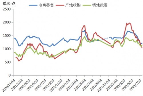 本期新華·宜昌秭歸臍橙產(chǎn)地收購價格指數(shù)報1038.48點(diǎn),環(huán)比下跌3.69%,同比下跌34.10%;新華·宜昌秭歸臍橙電商價格指數(shù)報1199.13點(diǎn),環(huán)比持平,同比下跌10.05%;新華(中國)臍橙銷地批發(fā)價格指數(shù)報1145.94點(diǎn),環(huán)比上漲5.31%,同比下跌12.72%。