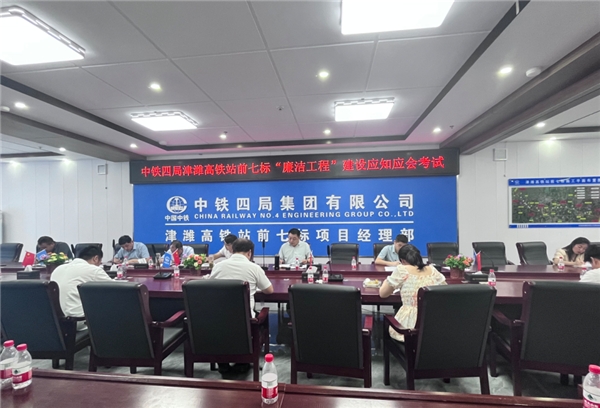 為進(jìn)一步增強(qiáng)項(xiàng)目全員廉潔自律意識(shí),積極響應(yīng)津?yàn)H高鐵“廉潔工程”建設(shè)工作全面開(kāi)展,7月24日,中鐵四局一公司津?yàn)H高鐵站前七標(biāo)項(xiàng)目黨總支組織項(xiàng)目經(jīng)理部全體員工開(kāi)展“廉潔工程”建設(shè)應(yīng)知應(yīng)會(huì)知識(shí)測(cè)試活動(dòng),以考促學(xué),以學(xué)促干,提升項(xiàng)目全體員工“廉潔工程”建設(shè)工作的主動(dòng)性、積極性。