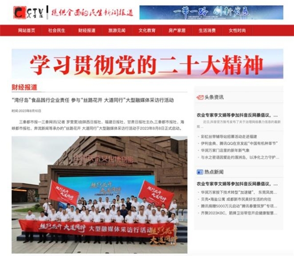 由陜西日?qǐng)?bào)社、福建日?qǐng)?bào)社、甘肅日?qǐng)?bào)社等,三家省級(jí)黨報(bào)主辦跨越七省行程4000余公里 “絲路花開 大道同行”大型融媒體采訪行活動(dòng),灣仔島作為指定食品贊助商。我們一同見證在國(guó)家”一帶一路“的大方向指引下,各個(gè)產(chǎn)業(yè)的蓬勃發(fā)展。本次采訪活動(dòng)受到全網(wǎng)媒體的廣泛的關(guān)注。