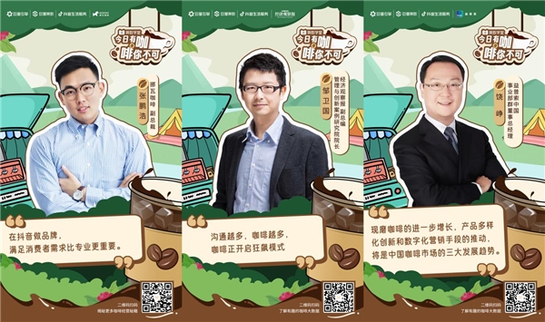 為此《算數(shù)學(xué)堂》重磅推出《今日有咖·啡你不可》欄目,聚焦咖啡賽道,為品牌商家們指點(diǎn)迷津,并邀請(qǐng)了8位重磅嘉賓,專(zhuān)業(yè)覆蓋咖啡生態(tài)各個(gè)環(huán)節(jié),包括消費(fèi)行業(yè)專(zhuān)家2位、咖啡品牌商家代表2家、品牌代理服務(wù)商1家、抖音生活服務(wù)專(zhuān)家2位、巨量引擎商業(yè)分析1位,他們將分別從各自的領(lǐng)域出發(fā),分享有關(guān)咖啡行業(yè)未來(lái)趨勢(shì)、品牌經(jīng)營(yíng)方法論、抖音平臺(tái)數(shù)字化營(yíng)銷(xiāo)秘籍等真知灼見(jiàn)。