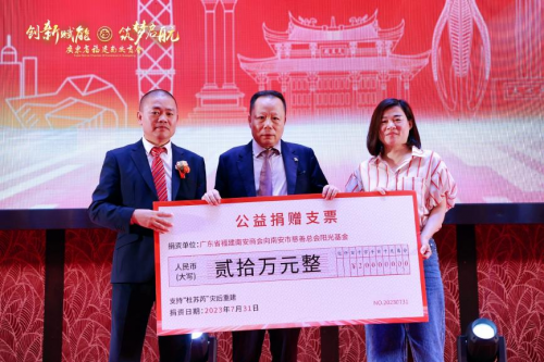 就職典禮上,廣東省福建南安商會積極響應(yīng)南安市委統(tǒng)戰(zhàn)部、市工商聯(lián)、市慈善總會號召,向南安市同心陽光基金捐贈人民幣20萬元,用于助力家鄉(xiāng)“杜蘇芮”臺風(fēng)災(zāi)后重建工作。