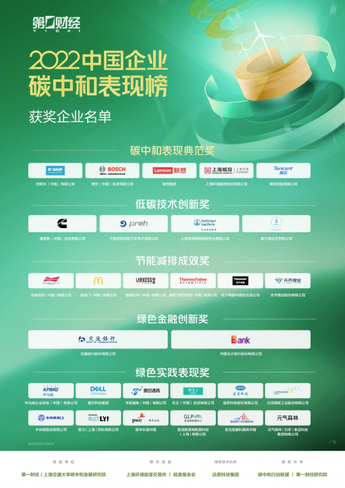 2023年4月22日下午,首屆中國(guó)企業(yè)碳中和表現(xiàn)榜頒獎(jiǎng)盛典在上海隆重舉行,29家在碳中和進(jìn)程中表現(xiàn)出色的企業(yè),分獲5大獎(jiǎng)項(xiàng)。