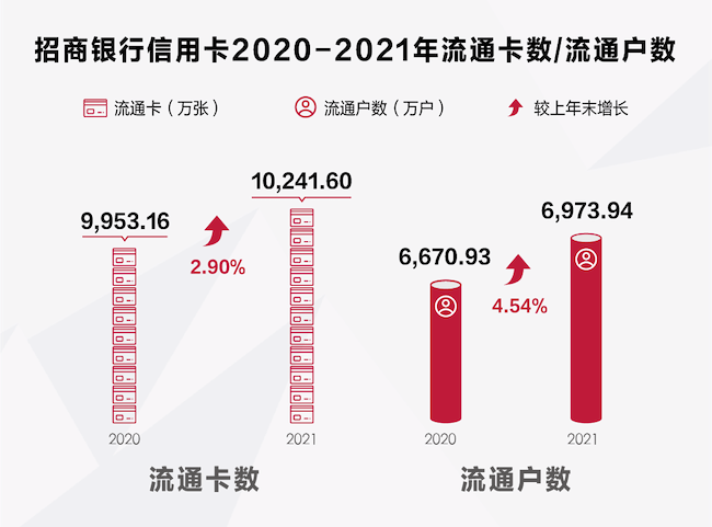 據(jù)財(cái)報(bào),截至2021年底,招行信用卡流通卡量10241.6萬(wàn)張,較上年末增長(zhǎng)2.9%,首次突破1億張;流通戶(hù)數(shù)6973.94萬(wàn)戶(hù),較上年末增長(zhǎng)4.54%。招行信用卡流通卡量、流通戶(hù)數(shù)在高位穩(wěn)步增長(zhǎng),與其從客戶(hù)視角出發(fā)推動(dòng)產(chǎn)品升級(jí),完善豐富的產(chǎn)品矩陣不無(wú)關(guān)系。