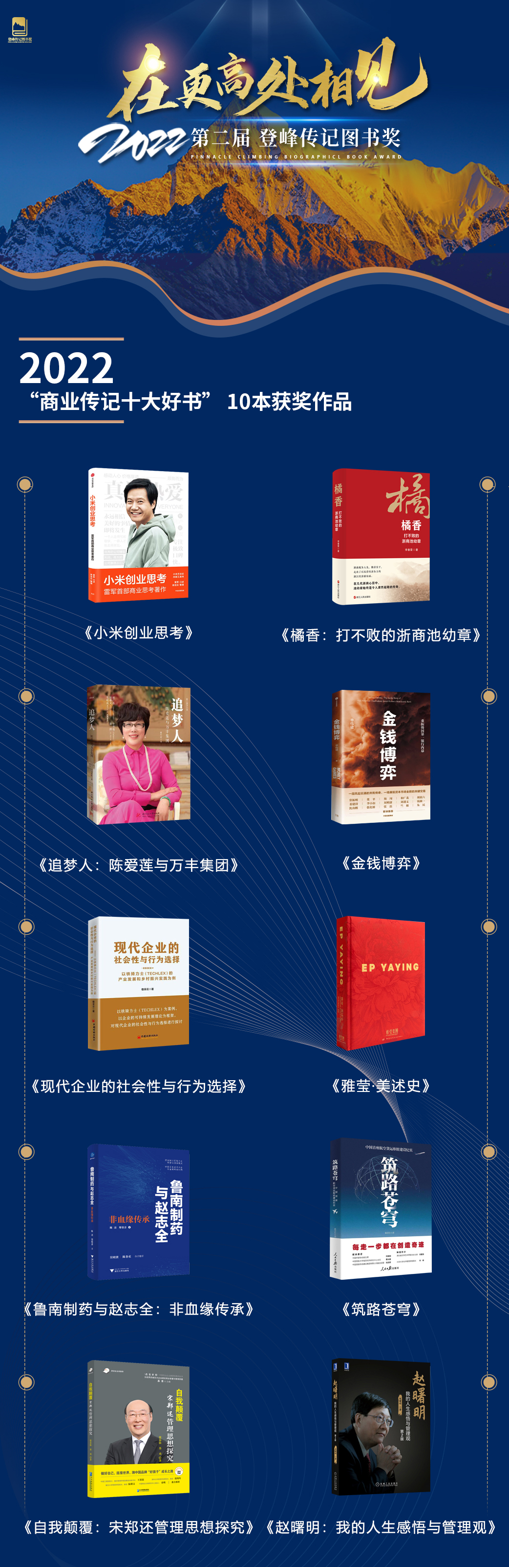 感謝社會各界人士對本次評選活動(dòng)支持,請持續(xù)關(guān)注2023年第三屆“登峰傳記圖書獎(jiǎng)”!
