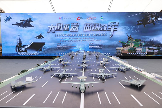 輝煌歷程展區(qū)以時間主線,將我國軍事科技領域的重要任務和重大事件,形成時空長廊,再現(xiàn)“大閱兵”的恢宏場景;陸戰(zhàn)驕子展區(qū)則是展示陸軍現(xiàn)代化建設成果的重要展區(qū),各型1:1比例的裝備模型,讓人們深刻體會到中國陸軍裝備的壯大;劍指深藍展區(qū)聚焦海軍強大艦艇裝備,各型號軍艦和先進武器系統(tǒng)的展示讓人們感受到海軍走向深藍的勇氣;藍天利刃展區(qū)則展示空軍先進武器和戰(zhàn)機,各型號戰(zhàn)機和導彈的專業(yè)介紹讓人們體驗到空軍的迅猛發(fā)展;鳴嘯長空展區(qū)則是以“兩彈一星”為主力展品,并結合導彈發(fā)射車、空天一體打擊體系等內(nèi)容,展示我國戰(zhàn)略打擊力量;深空探秘展區(qū)則是展示我國太空事業(yè)發(fā)展成果的重要展區(qū),各類衛(wèi)星、火箭、空間站的展示,讓人們感受到中國太空事業(yè)的高速發(fā)展。
