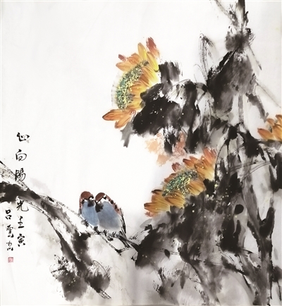 《心向陽(yáng)光》國(guó)畫(huà) 68×68cm 2022年