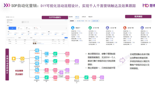 除此之外,也可以通過(guò)慧博「雪鸮」智能營(yíng)銷平臺(tái)內(nèi)的SOP自動(dòng)化營(yíng)銷、會(huì)員全生命周期各觸點(diǎn)關(guān)懷提醒等智能營(yíng)銷功能,幫助集團(tuán)實(shí)現(xiàn)自動(dòng)化運(yùn)營(yíng)及營(yíng)銷,提升運(yùn)營(yíng)效率。