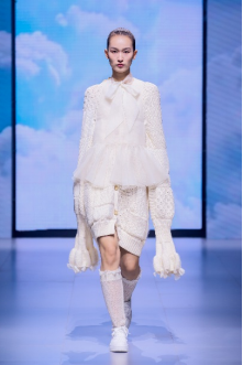 在“童年”主題秀演中,法國(guó)設(shè)計(jì)師聯(lián)袂浙江懿紗紡織科技有限公司、紹興柯橋豐旺紡織品有限公司,圍繞兒童的藝術(shù)、回到學(xué)校、童年的回憶三個(gè)子主題,共同演繹了童年的懷舊故事。設(shè)計(jì)師以精細(xì)的絎縫、印染、明線縫紉及自然著色的效果制作服裝和圖案,在工藝上采用了法國(guó)特有的編織技術(shù),并結(jié)合WALTZ系列花紗、三醋酸、錦滌歐根紗、六角硬網(wǎng)等面料輕薄有型、色彩飽滿的特色,最大程度實(shí)現(xiàn)了紡織工藝的價(jià)值化。特別是在傳統(tǒng)手工藝非遺、生態(tài)環(huán)保材料等系列元素的加持下,為整場(chǎng)秀演增添了可持續(xù)時(shí)尚的價(jià)值。